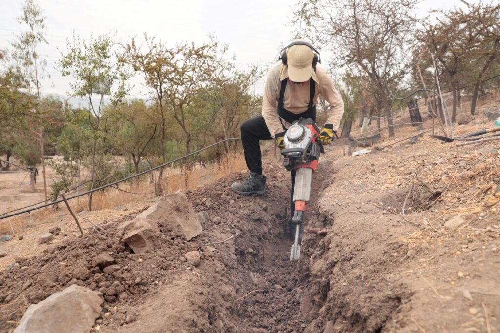 - Con la construcción de Obras de Conservación de Agua y Suelo (OCAS), tales como zanjas de infiltración, avanza el proyecto para transformar el sector de La Virgen del cerro Chena en un paisaje de retención de agua, aportando a la recarga del acuífero del Gran Santiago.