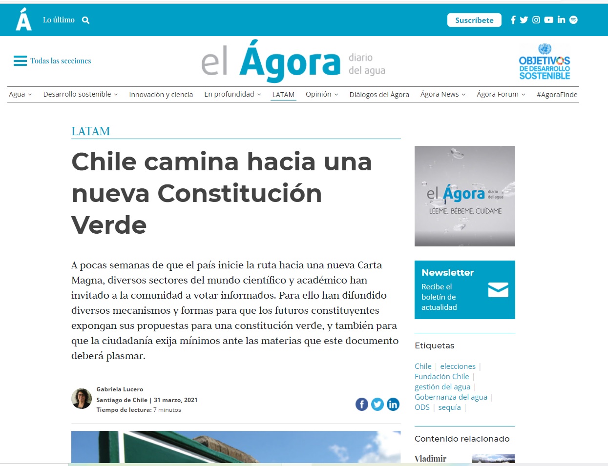 - Esta entrevista a Ulrike Broschek, en el marco de un reportaje sobre el futuro del agua en Chile, fue publicada en la revista Ágora el 31 de marzo de 2021