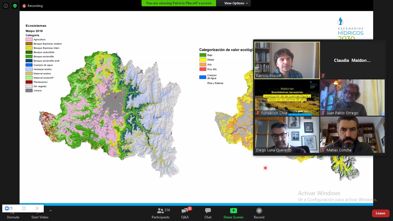 El estudio “Análisis del estado actual de los ecosistemas terrestres, asociados a dos cuencas en Chile central: Maipo y Maule”, fue presentado este jueves 27 de agosto durante un seminario web donde, además, se llevó a cabo un panel de conversación para proyectar la forma de lograr un desarrollo sostenible en los territorios durante los próximos 20 años.