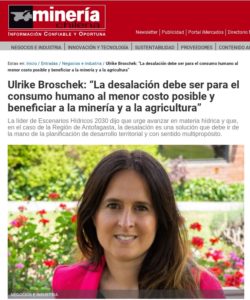 Ulrike Broschek: “La desalación debe ser para el consumo humano al menor costo posible y beneficiar a la minería y a la agricultura”